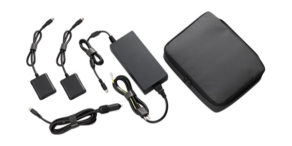 ACアダプターやシガーアダプターを収納できる専用ポーチがついているので、持ち運びに便利です。