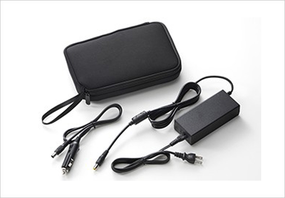 付属のACアダプターやシガーアダプターを収納できる専用ポーチがついているので、持ち運びに便利です。