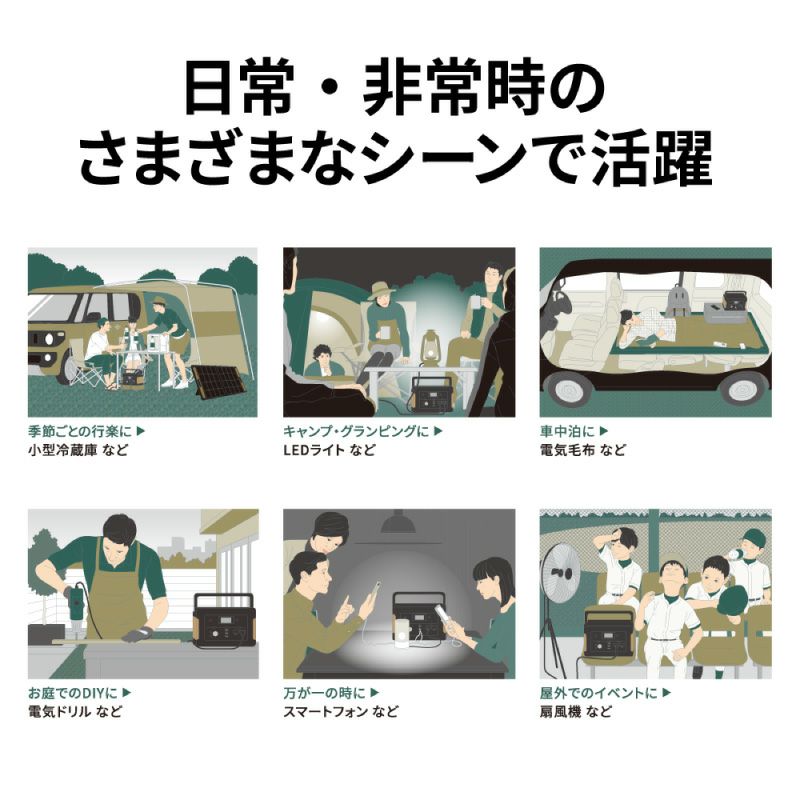 ポータブル電源は、防災アイテムとしてだけでなく、お庭でのDIY、キャンプなど、コンセントのない屋外で電気製品が使用できる大変に便利なアイテムです。さらに在宅勤務が増えた昨今では、コンセントを気にすることなく好きな場所でテレワークすることも可能になります。