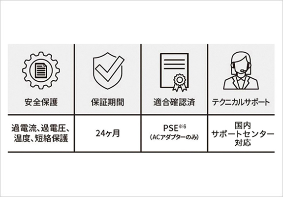 | USB出力 | 最大24W[USB Type-A×2]5V DC 2.4A |