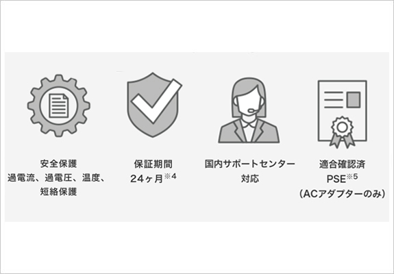※4:ポータブル電源の場合。ソーラーパネル、延長ケーブルは12ヶ月。