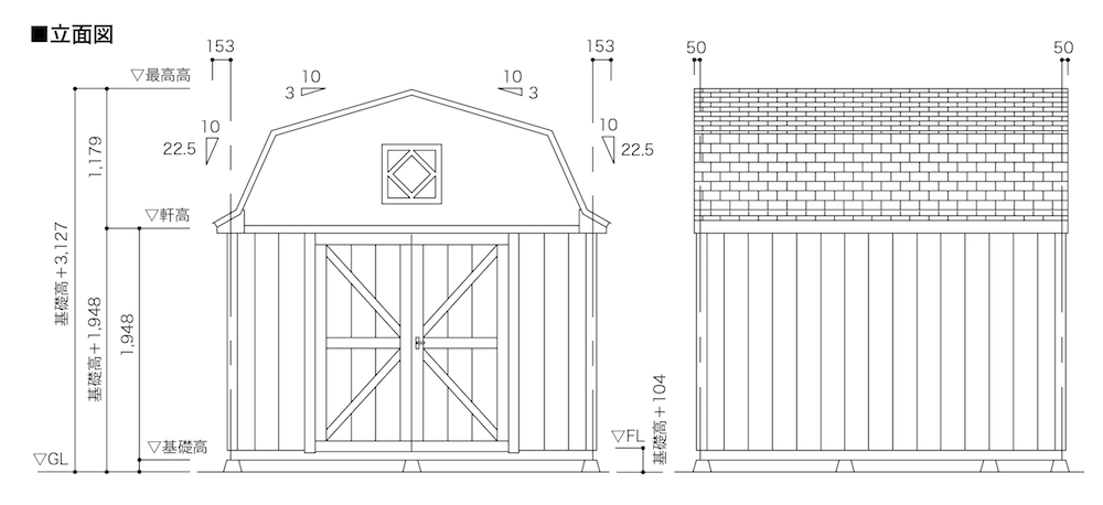 | 建物外寸法(mm) | 幅3107×奥行3107×高さ3127 | 最小サイズ |