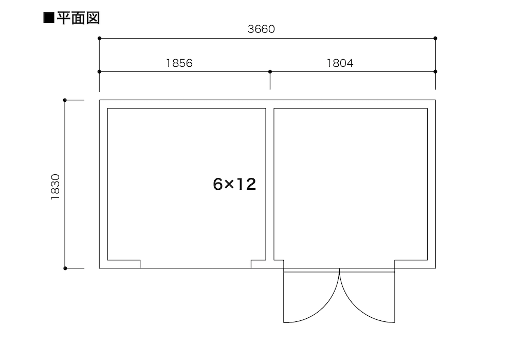 | キットサイズ | 6×12/1830×3660・6.7㎡・2.0坪 |