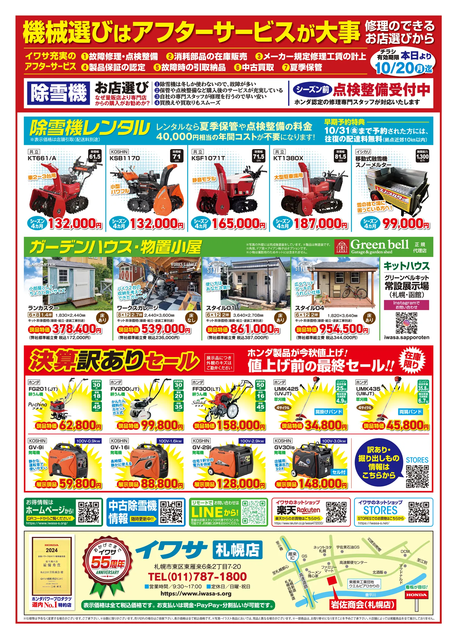 札幌店~2025除雪機早期予約キャンペーン&決算訳ありセール