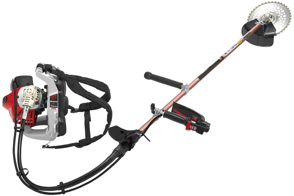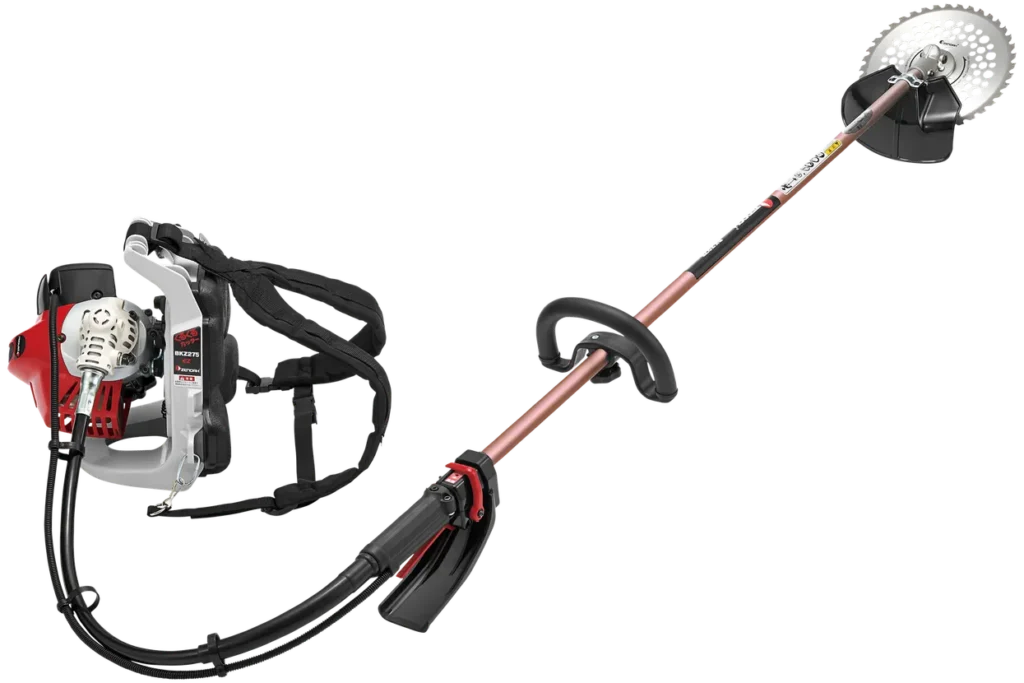背負い式刈払機。スムーズな操作と低振動、自由自在に回るくるくるカッター。