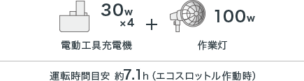 ■バッテリー充電や照明の長時間運転で作業現場を支える