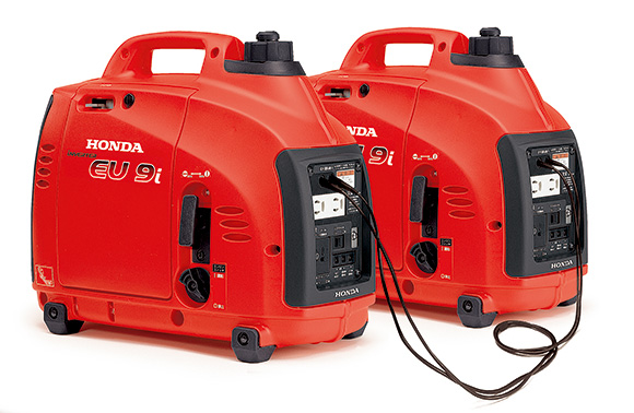 並列運転コード(別売)で、2台の発電機をつなげば出力が2倍に。炊飯器や電子レンジなど消費電力が大きな機器も使用できます。