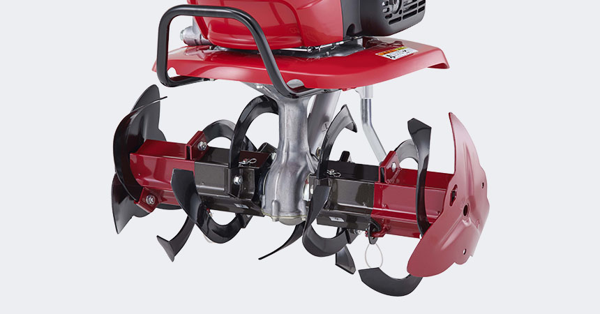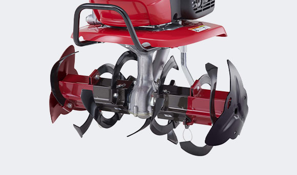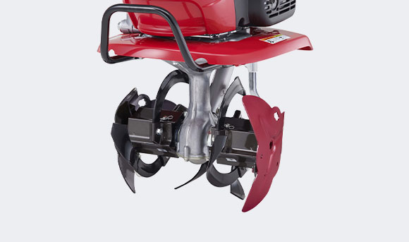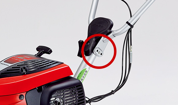 ハンドル手元のスルットルレバーを握ると耕うん爪が動き、放すと止まる簡単操作。初めての方でも安心してご利用になれます。