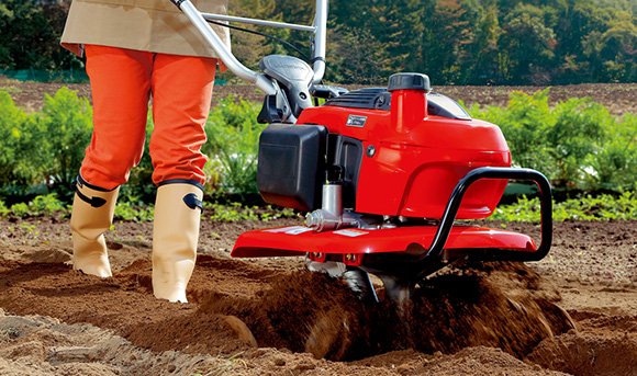 粘り強いパワーを発揮する57cm³のエンジンと車体バランスの良さが優れた耕うん性能に貢献。