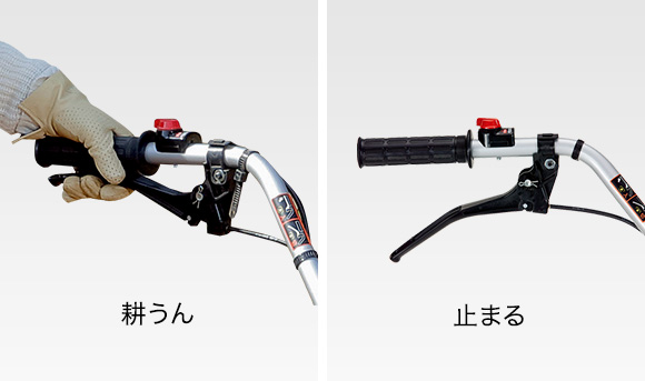 ■ 握ると耕うん、放すと止まる、簡単・安心のレバー操作