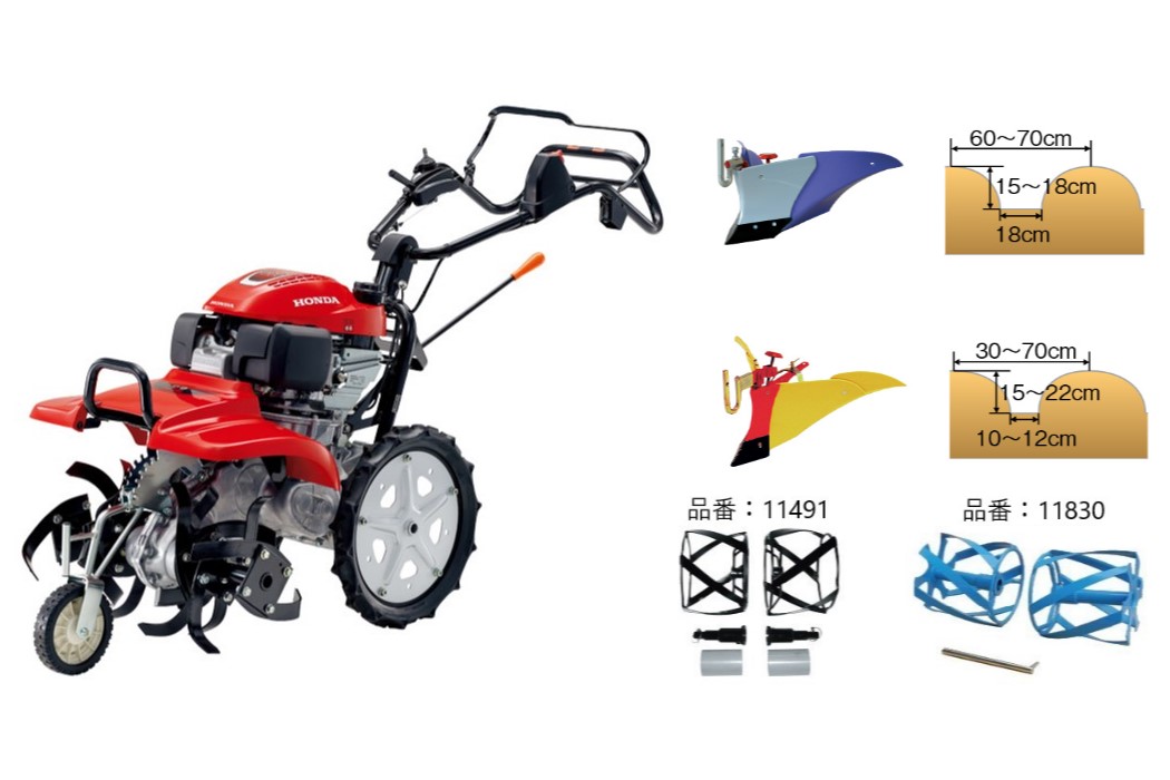 耕うん爪が前にあるため、畑の隅々まで耕うんでき、狭い畑や変形の場所を有効に活用できます。