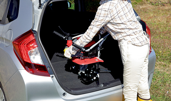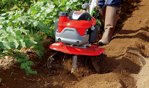 取り回しやすいサイズで、耕うん機をクワ代わりに手軽に使えこなせます。