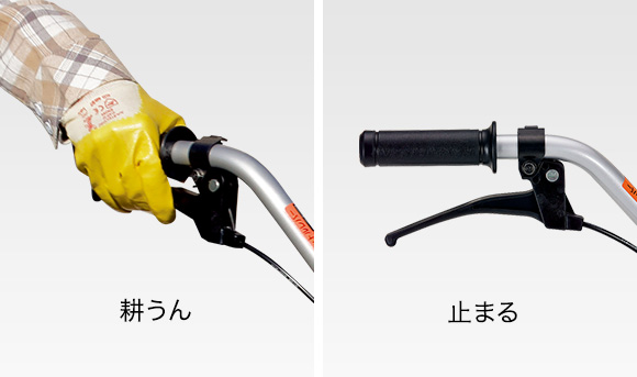 ■ 握ると耕うん、放すと止まる、簡単・安心のレバー操作