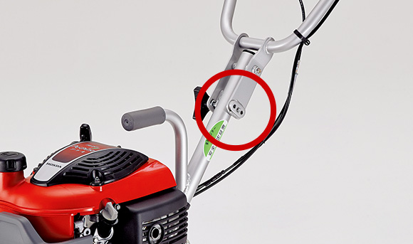 ハンドル手元のスルットルレバーを握ると耕うん爪が動き、放すと止まる簡単操作。初めての方でも安心してご利用になれます。