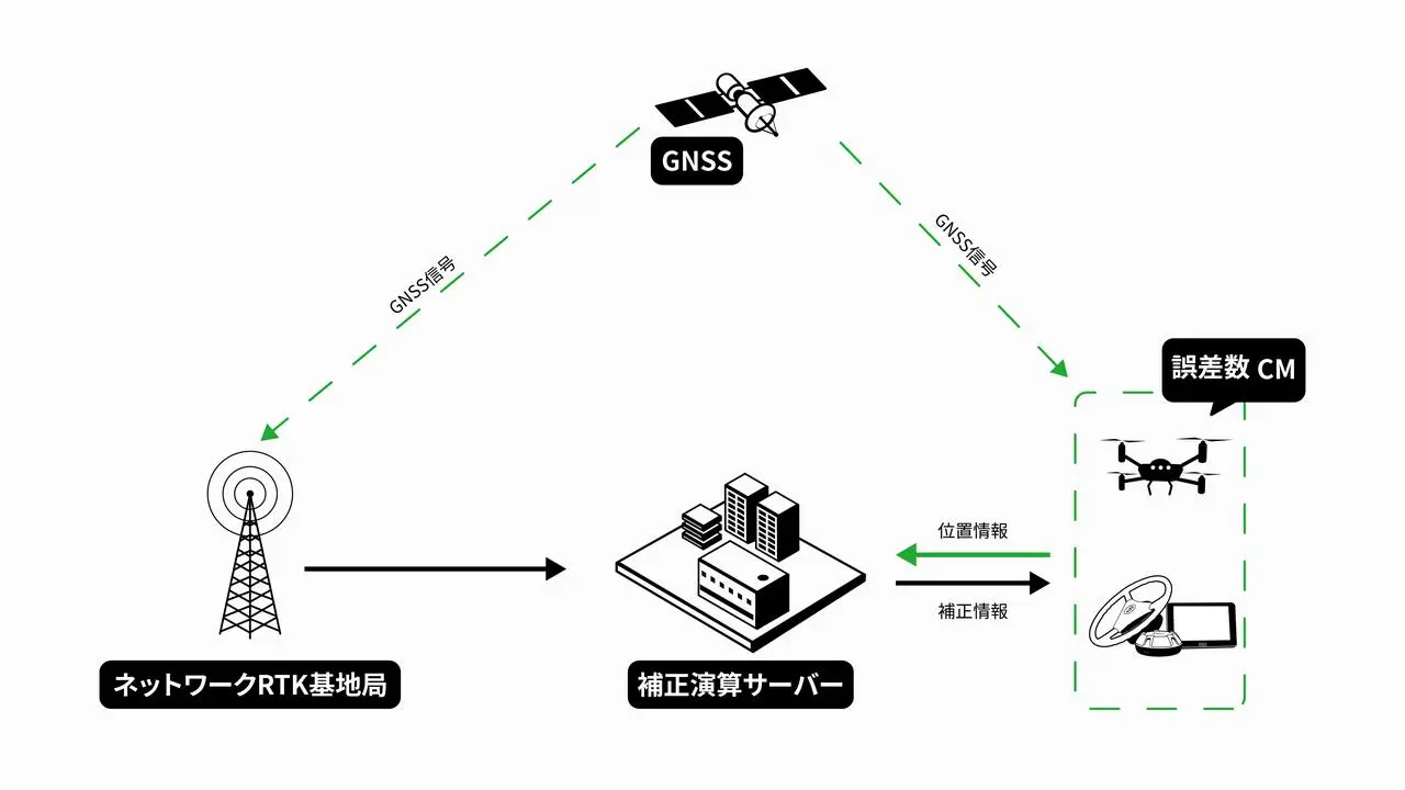 GNSS受信機はこの補正データを利用して、リアルタイムで高精度な位置情報を取得できるようになります。