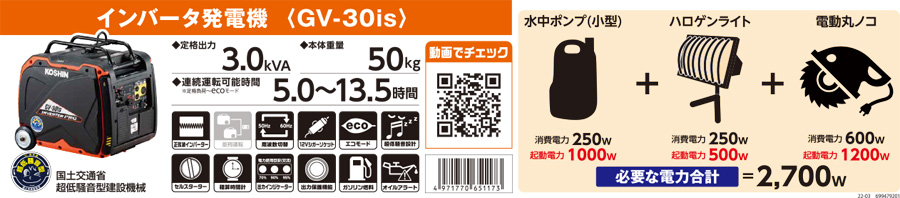 3.0kVAの高出力で、安定した電力供給を実現。プロの現場でも信頼される正弦波インバーター発電機。頑丈で軽量、現場での強力なサポートを提供する最適なパートナーです!