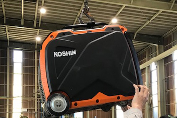 - 便利な移動機能:移動ハンドルと1点吊りフックが標準装備され、狭い場所でもスムーズに移動でき、積み降ろし作業も効率的に行える。