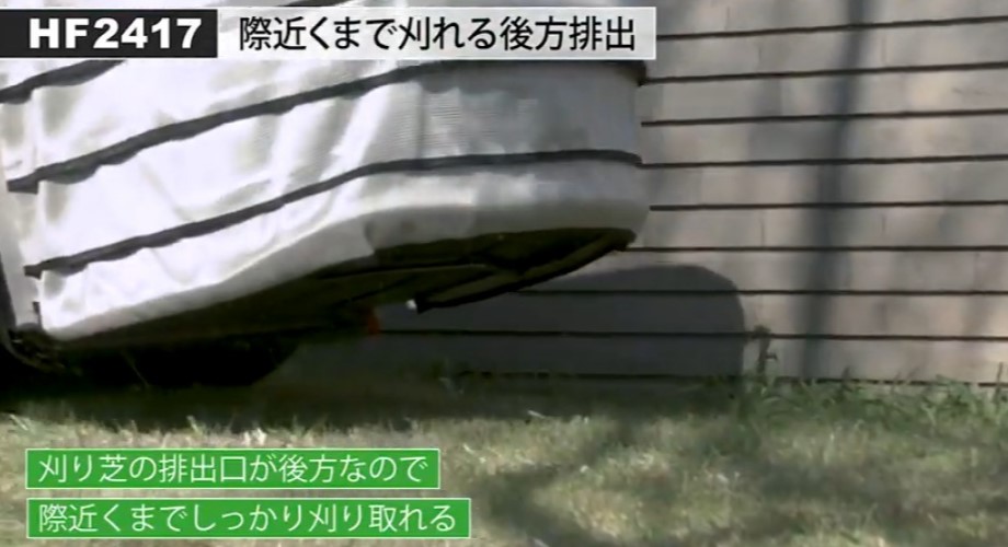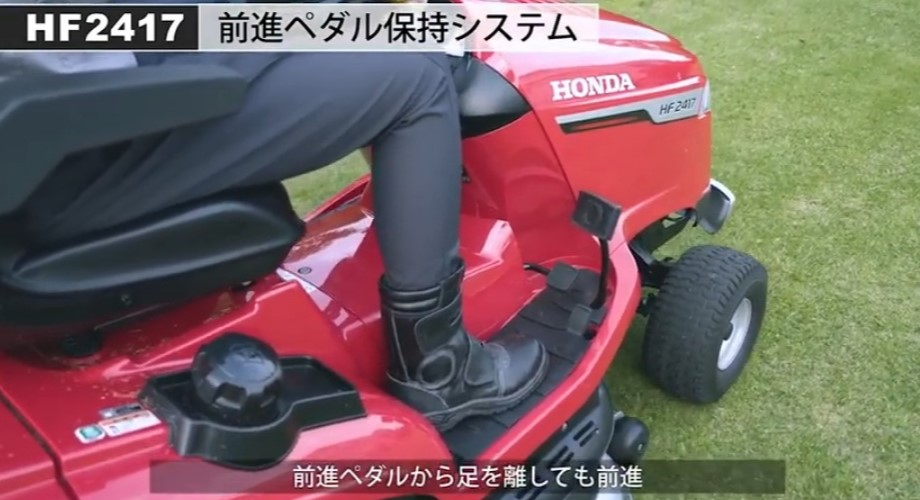 後進で刈り取りする時はボタンを押しながら後進ペダルを踏むことで、エンジンが停止することなく刈り取りが可能です。