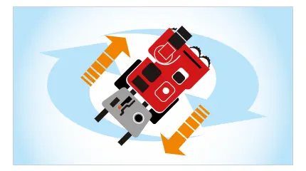 左右のモーターを独立して制御。クローラの回転数を最適に調整することで、ショックの少ない滑らかな旋回が行えます。