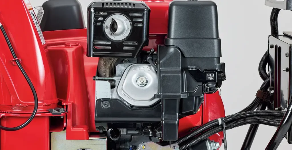 硬い雪などによるエンジン負荷が生じても、電子制御によってエンジン回転数を一定に保つ、電子ガバナーを採用。機械式ガバナーでは出力が下がるスロットル全開時でも回転数が落ちずに高出力を発揮します。