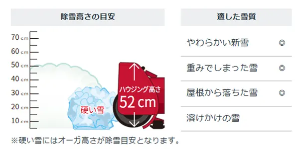 | 除雪高:新雪の目安 | 42cm | 42cm | 42cm | 51cm | 52cm | 52cm | 52cm | 52cm |
