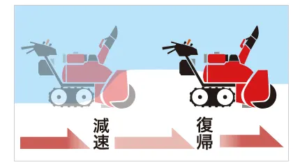 積雪量や雪の重さなど、作業負荷に応じて車速を自動で調整。レバーによる速度調整が不要に。簡単で一段と効率よい除雪を実現します。