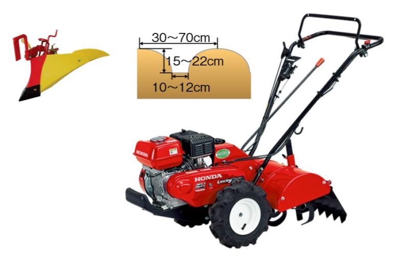 耕うん機でけん引することで、土を寄せて畝を作ることができます。畝づくりと土寄せも、耕うん機ならあっという間に完了。