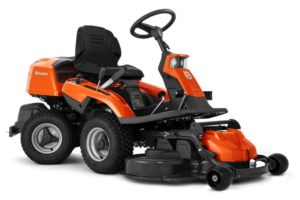 小・中規模用ライダー。刈幅94~103cm、ガソリンエンジン式芝刈機。快適性を高める機能を備えた、汎用性の高い全輪駆動フロントモア。