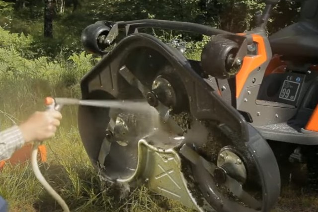 カッティングデッキを整備位置に傾斜させることができるため、清掃時や整備時に容易にアクセスできます。