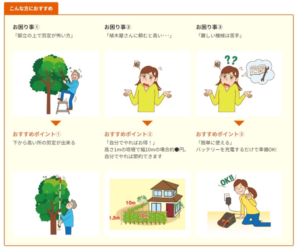 | 刈り込み幅 | 350 mm | 360 mm | 300 mm |