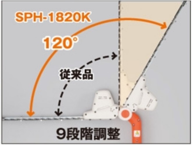 従来より使用可能範囲を+30°、使用可能ヘッド角度120°で、さらに使いやすい。